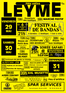 Festival de Bandas, retraite aux flambeaux, soirée Podium EQUINOXE, Tounoi de foot, Concours de pêche, bal musette, Repas, feu d'artifice…